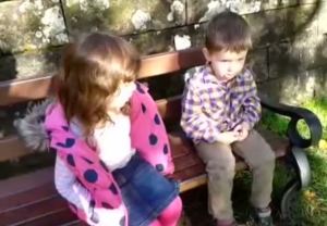 A little girl is telling off her two year old brother for spitting at an older boy. You will love the way she’s admonishing him and he’s sitting there fidgeting, biting his lower lip. It’s hilarious. I had to share!