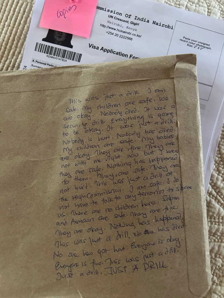 I was recalling the trauma from when I felt I had nearly lost my children during a terrorist attack. Visions of that day and the present day sounds kept intertwining, and I donโt think I was coherent at all. The High Commission staff kept checking up on my asking me if I needed water or a cup of tea. Every person who stopped to check on me had nothing but kind words of reassurance. I am welling up as I write this because I am reliving that moment as I recount it.